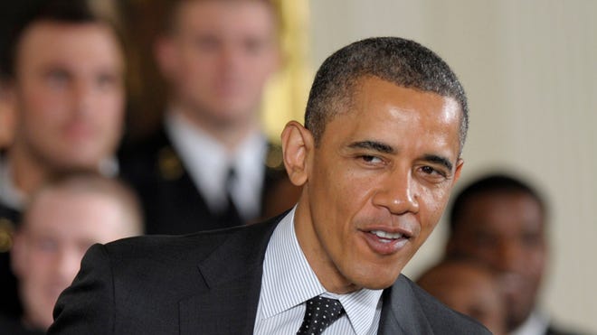 FILE: April 12, 2013: President Obama hosts a White House event for the U.S. Naval Academy football team.AP