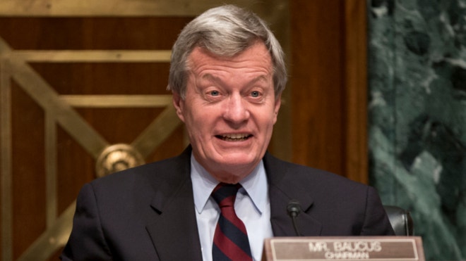 April 17, 2013: Senate Finance Committee Chairman Sen. Max Baucus, D-Mont. questions Health and Human Services Secretary Kathleen Sebelius as she testifies on Capitol Hill in Washington.AP